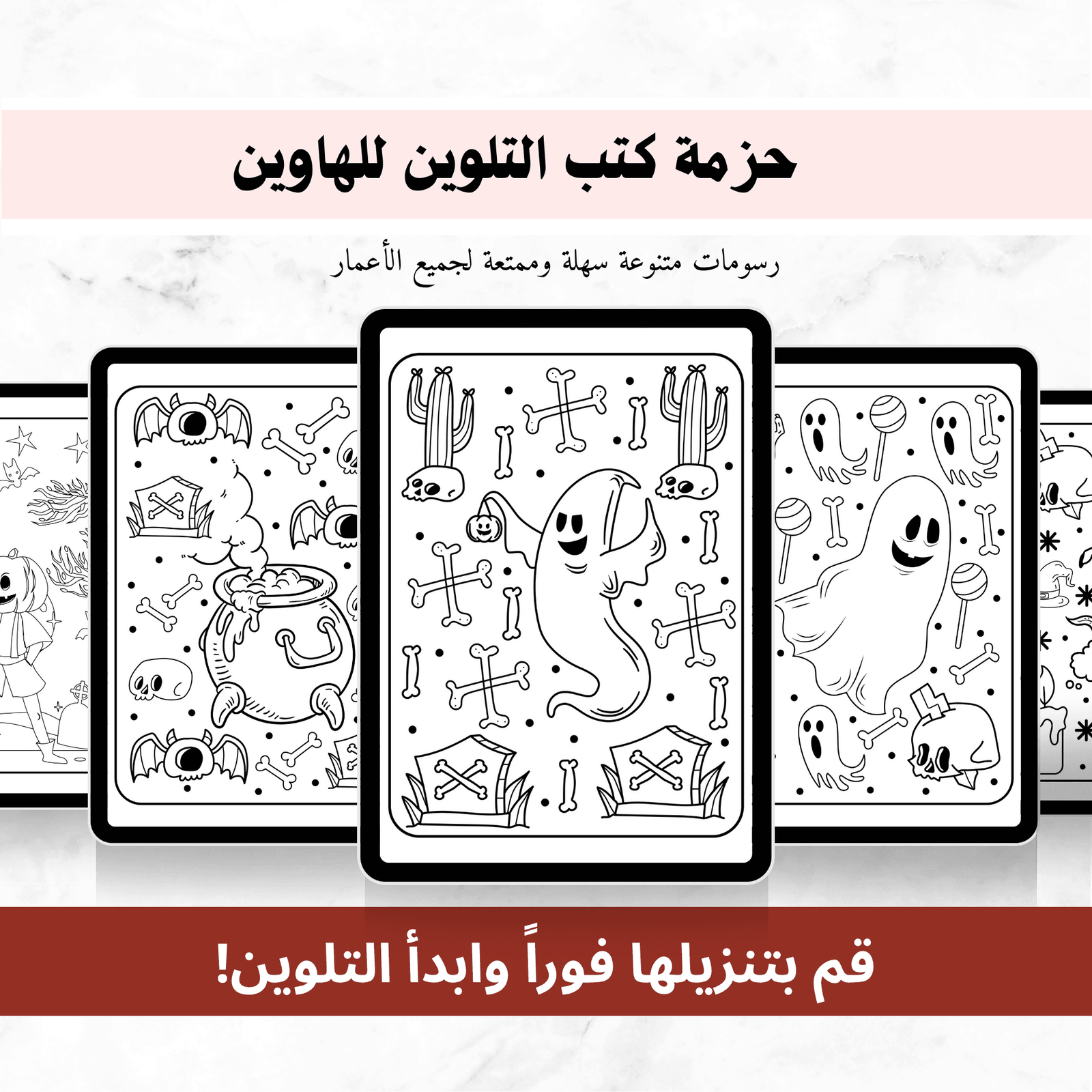 استعد للاحتفال بالهالوين بطريقة ممتعة وتعليمية مع حزمة كتب التلوين للهالوين!
