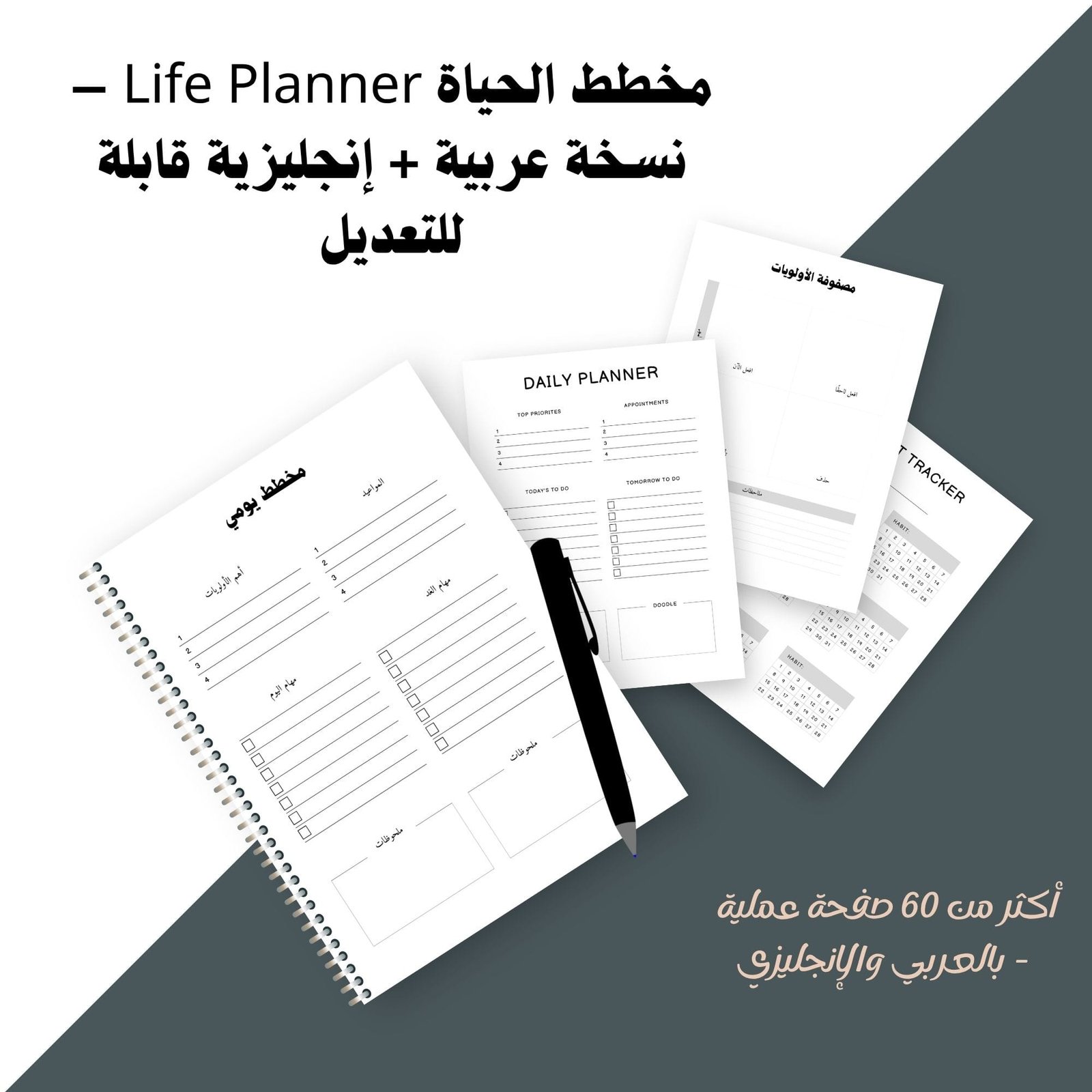 مع مخطط الحياة Life Planner ثنائي اللغة، ستحصل على أداة مرنة تساعدك في التخطيط لأهدافك، عاداتك، مهامك اليومية، ومتابعة تقدمك بشكل بصري ومرتب.