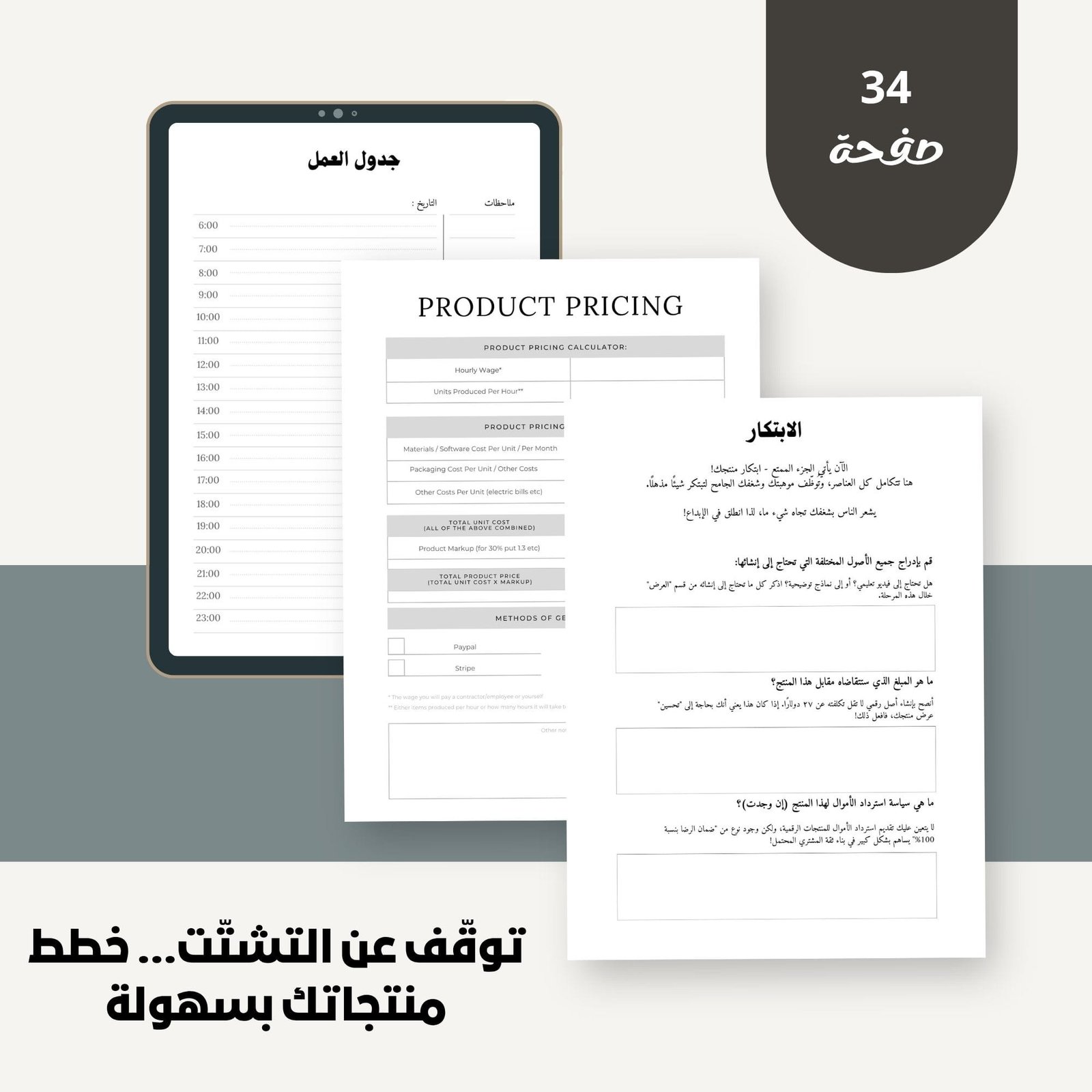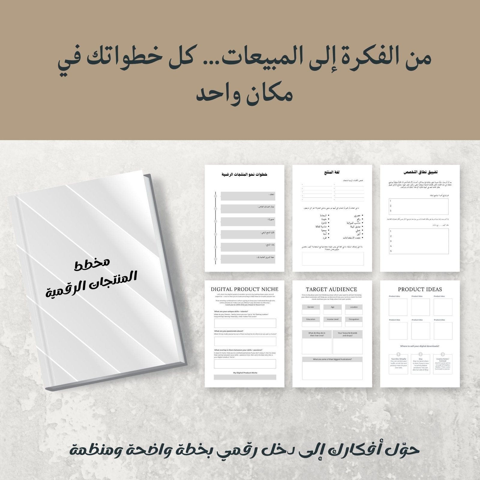 مع مخطط المنتجات الرقمية – Digital Products Planner، ستحصل على ملف احترافي شامل يساعدك على تتبع أفكارك، تنظيم إنتاجك، وجدولة إطلاق منتجاتك بشكل متكامل ومرتب.